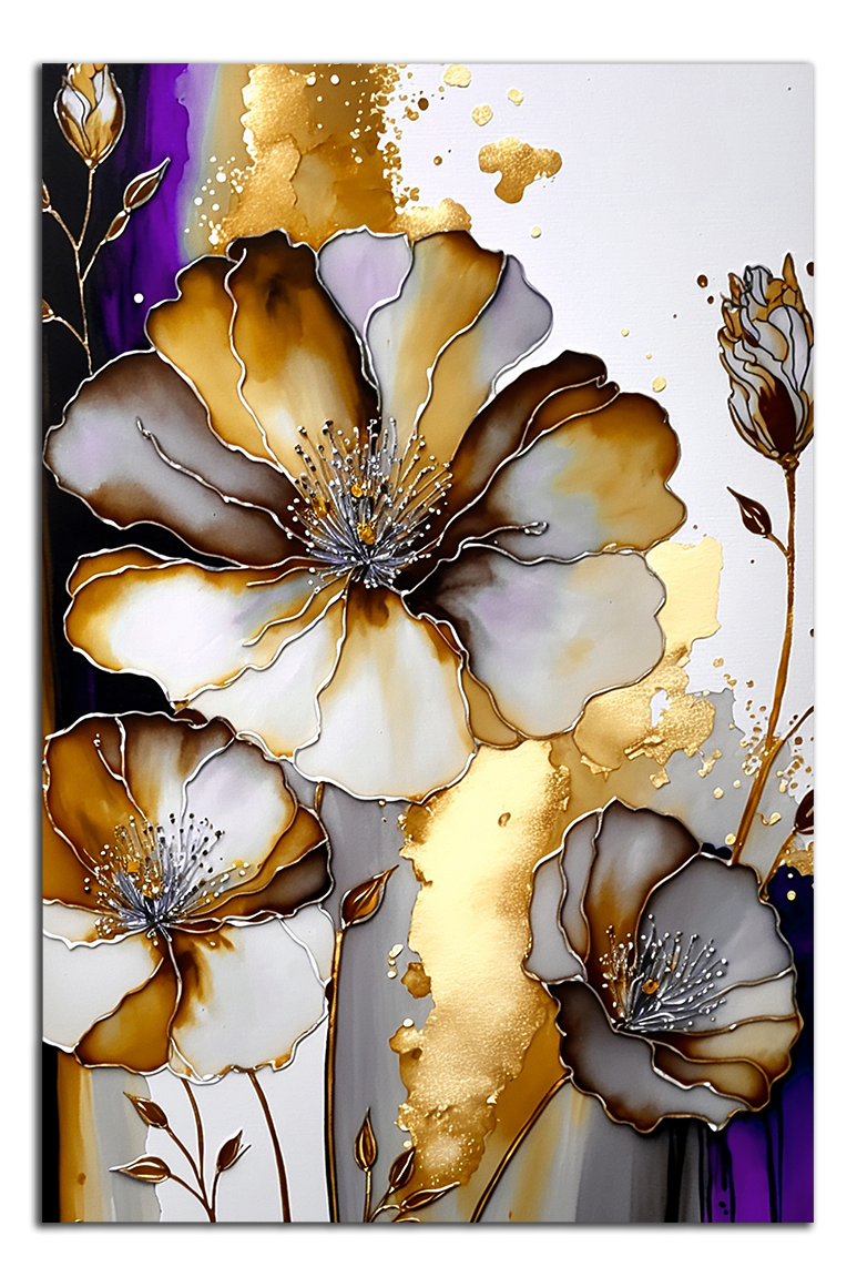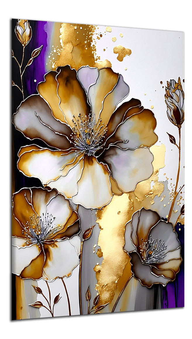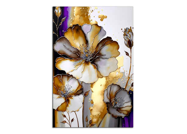 Obraz na plátně Fialové a zlaté květy