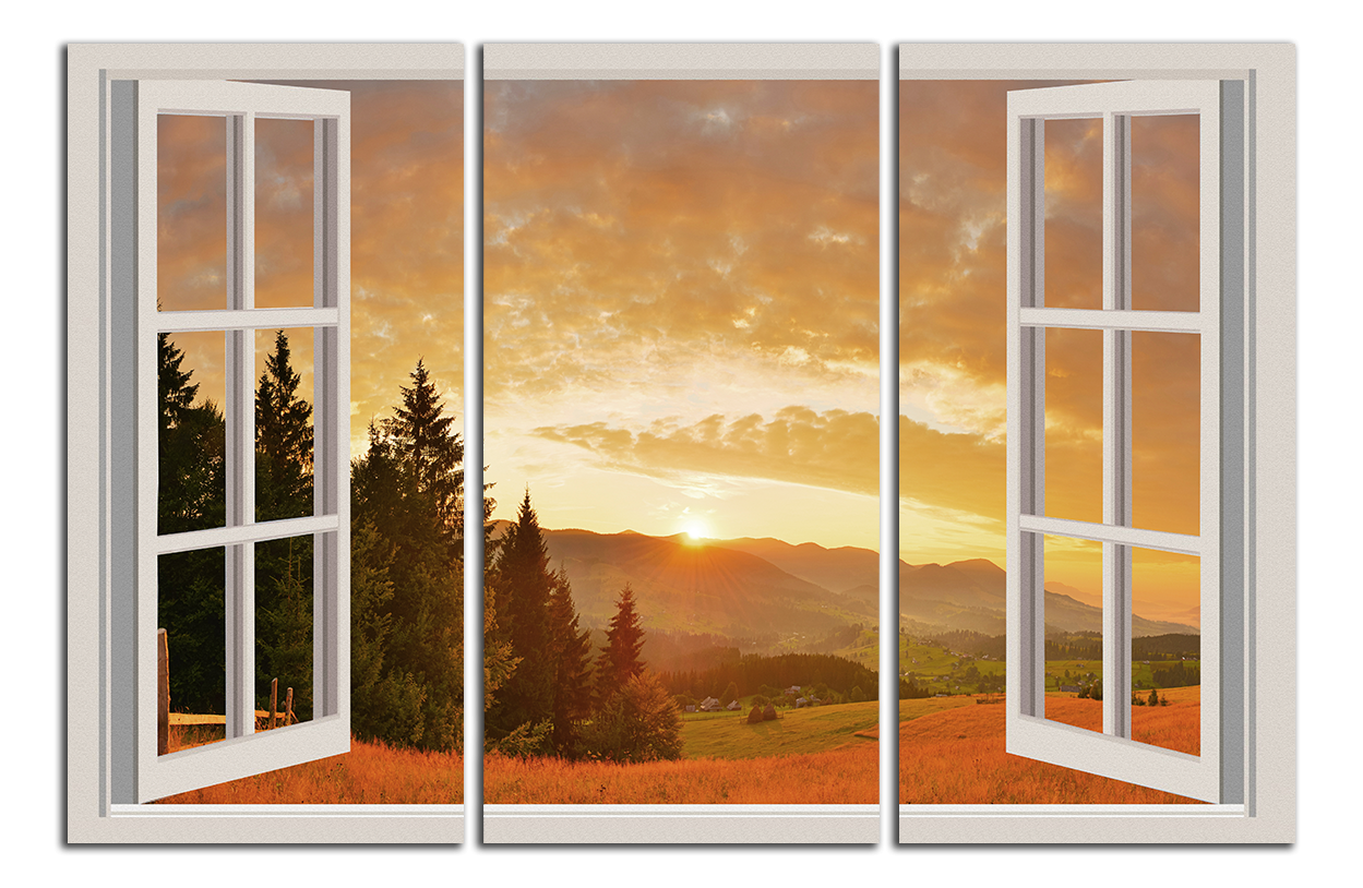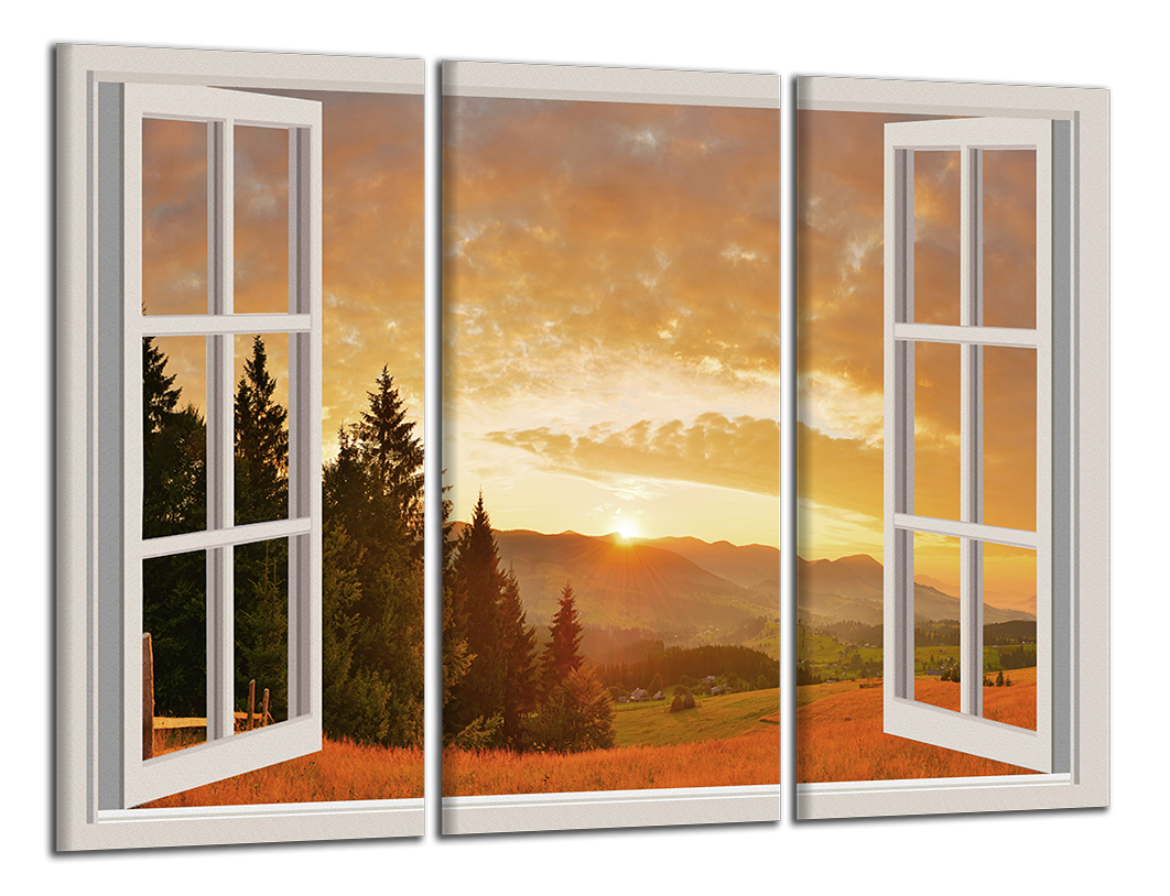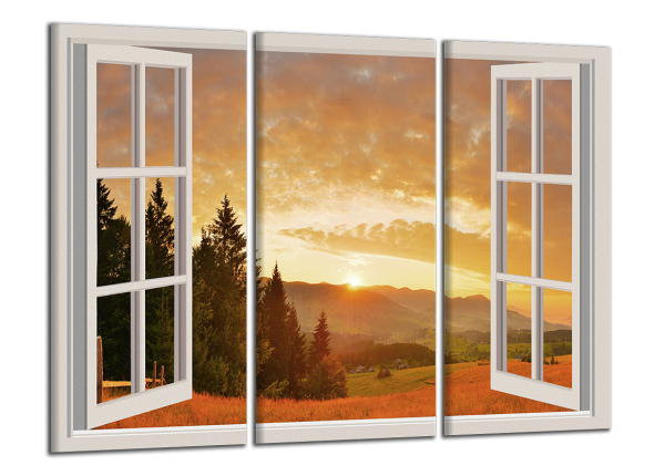 Obraz na plátně Okno a kopce