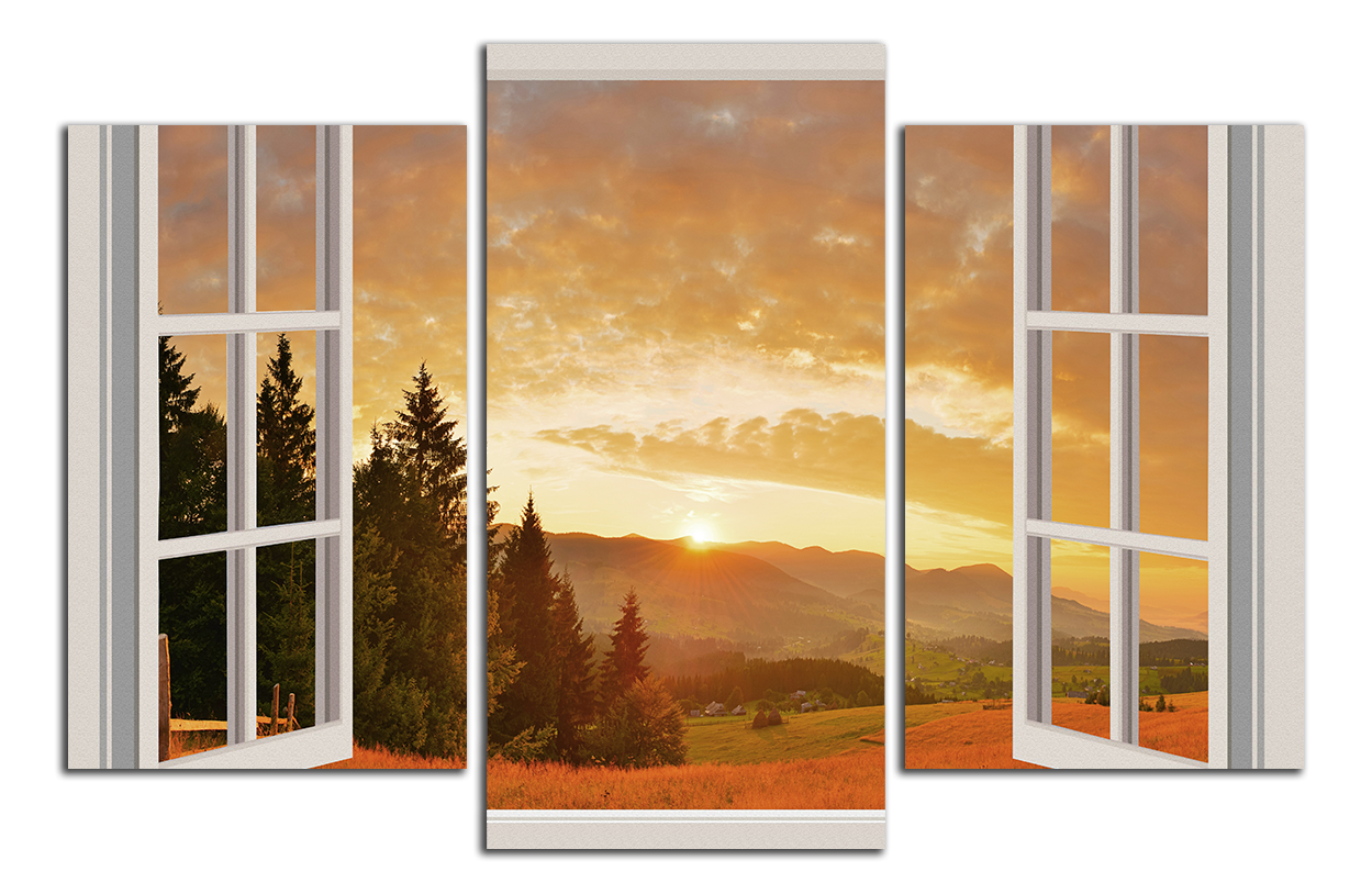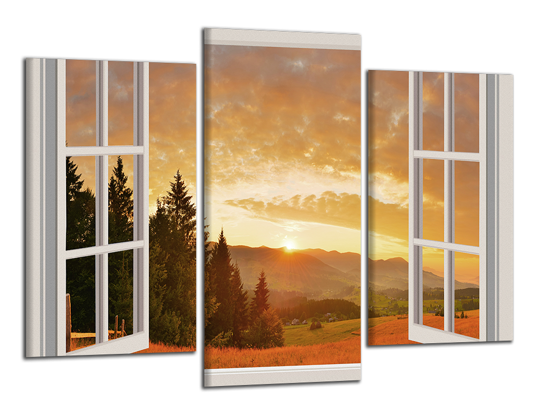 Obraz na plátně Okno a kopce