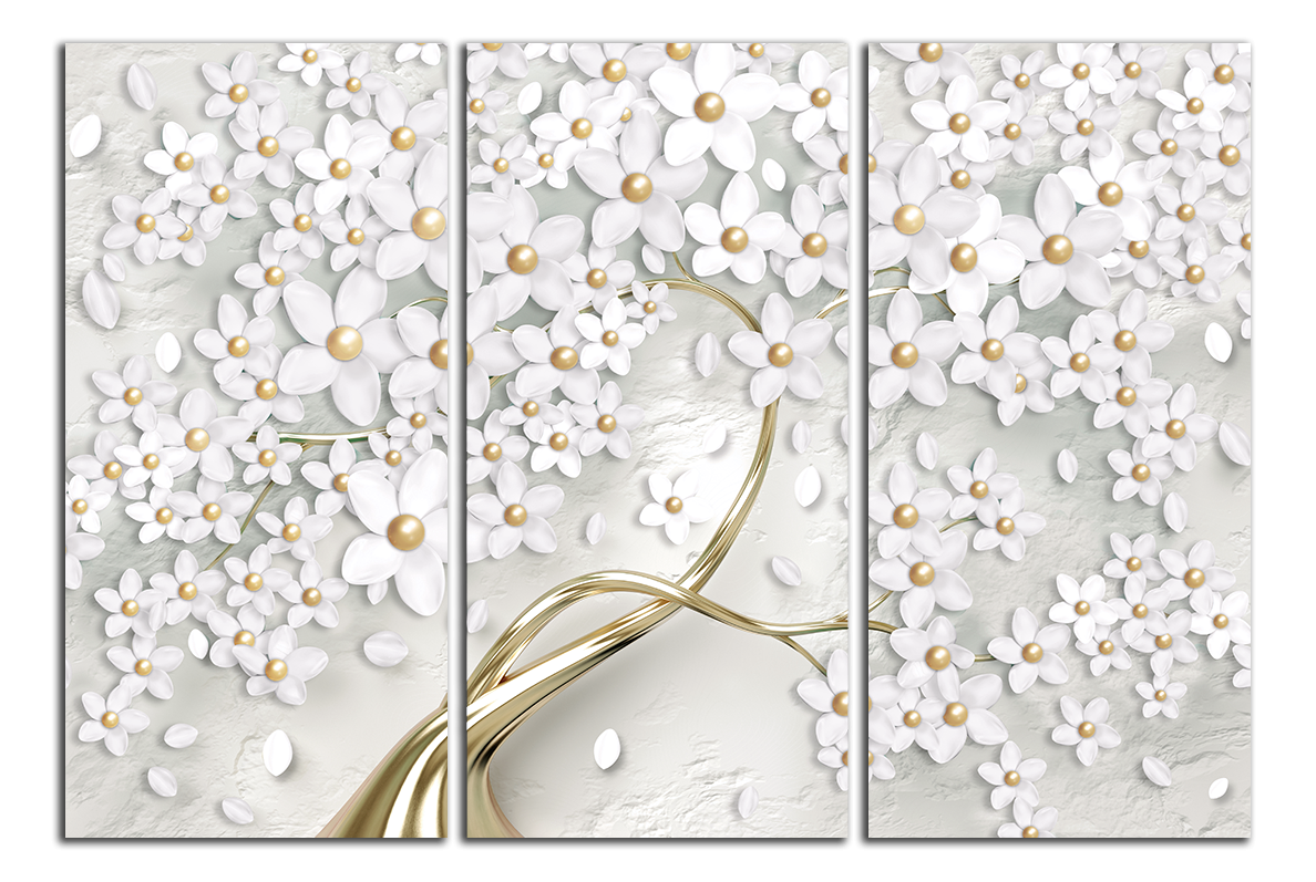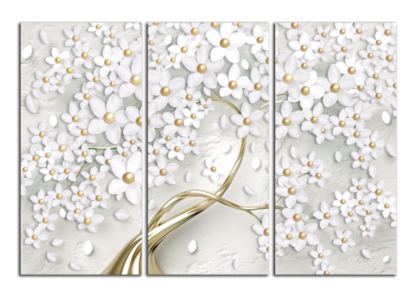 Obraz na plátně Zlatý strom s bílými květy
