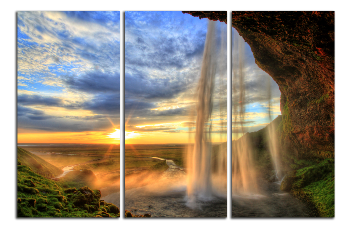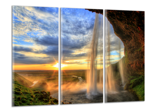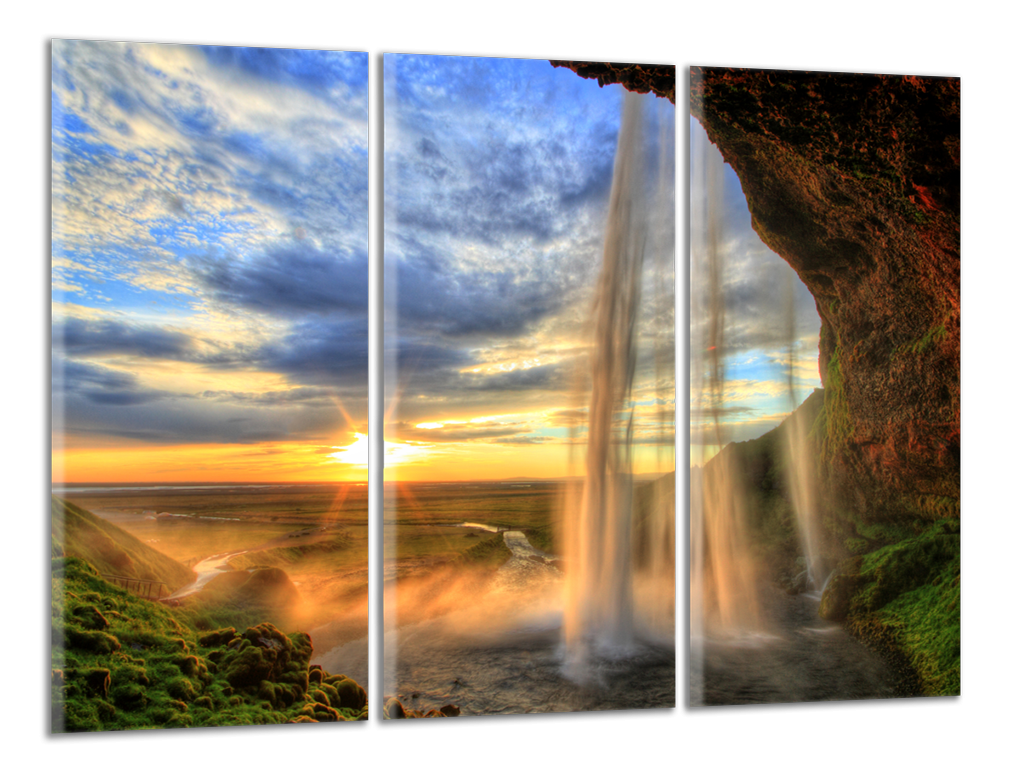 Obraz na plátně Vodopád a západ slunce