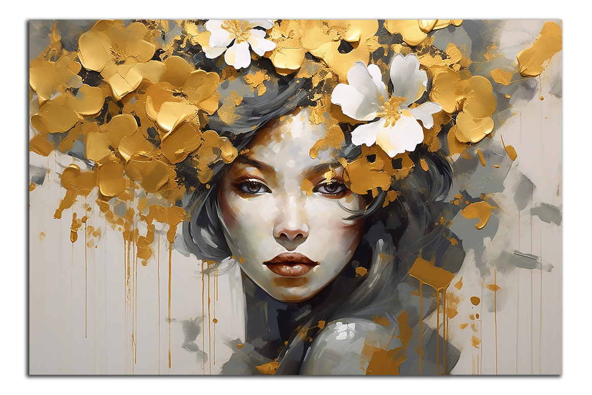 Obraz na plátně Žena a zlaté květy